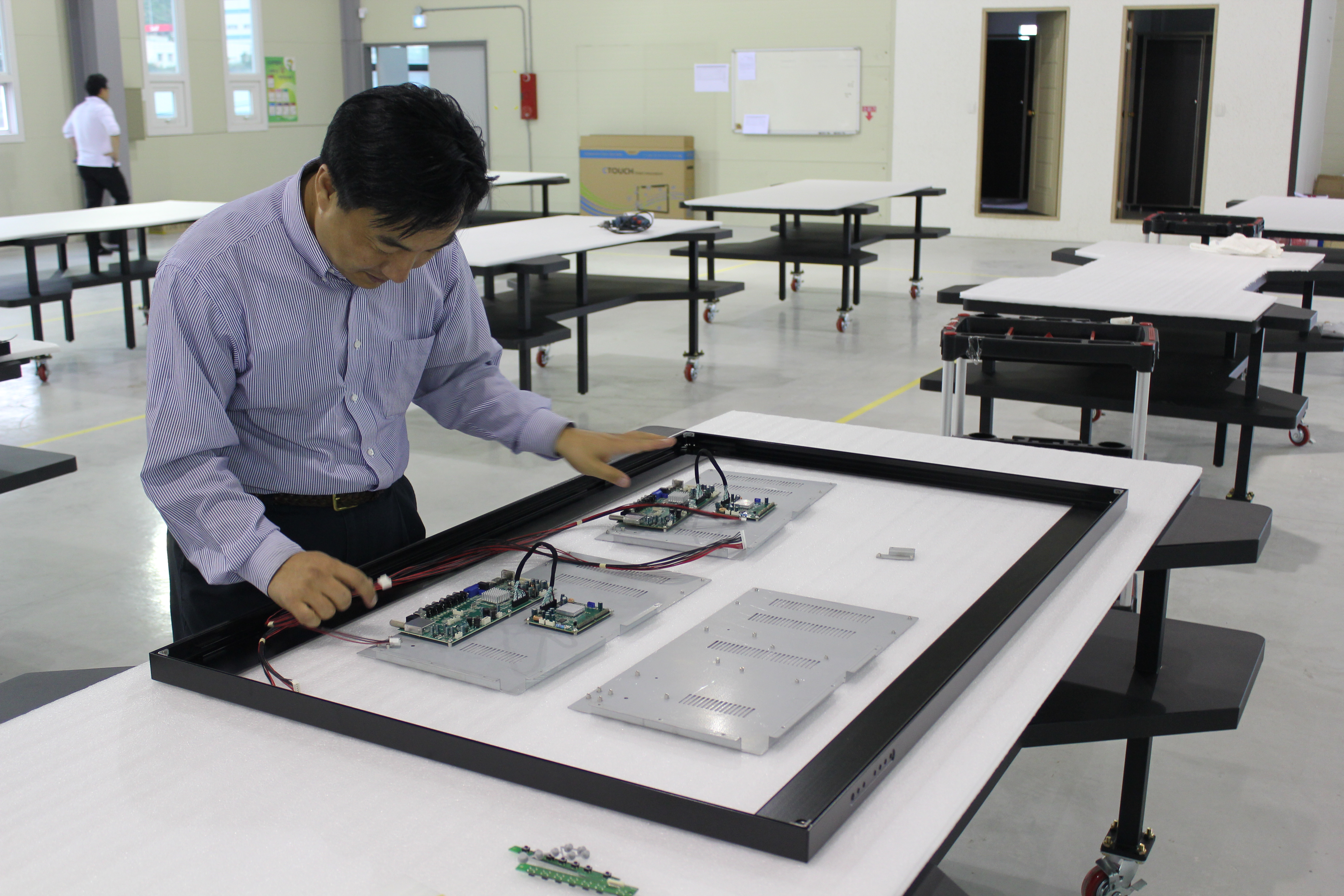 Ease of installation and maintenance services, low error rate and fast response speed employing the infrared camera allowing hand touch operation and accurate recognition of character writing with no use of exclusive pen.