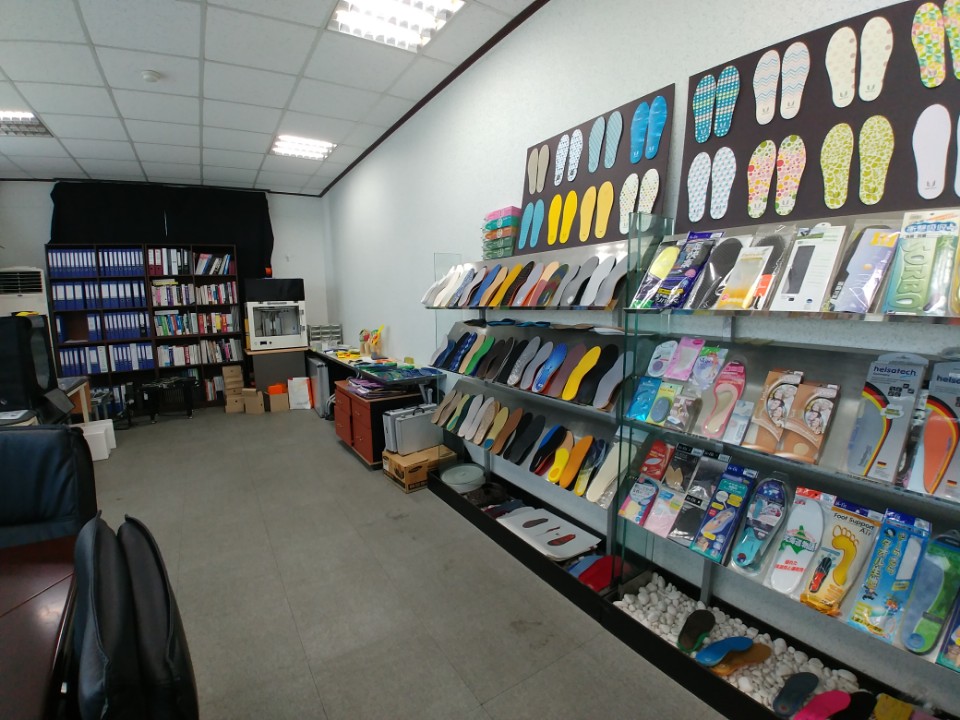 Determine the adhesive location (anti-slippery protrusion) at the back of the shoes