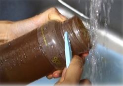 Doing so will turn the mat into a funnel shape, which drains water and collects food waste.