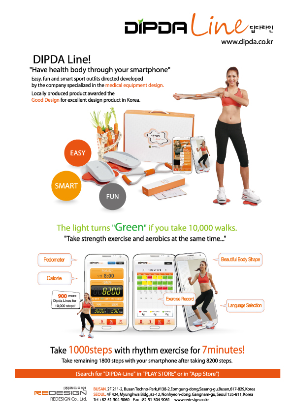 Redesign Co., Ltd has grown up as a medical-device-specialized company. We had done research on wellness system with the department of Biomedical Engineering at Kyeong-hee university. As a result, we have participated in building u-healthcare centers in Seoul Forest, Daegu Hamji Park, and Busan Children’s public park. Also serving as a chairman of a medical device experts’ forum called MEDEF, we have contributed a lot in the development of medical device industry by co-working with Korea Health Industry Development Institute, the ministry of Knowledge Economy and many other institutes and companies. Redesign, Co., Ltd are now demonstrating Smart Wellness(Wellbeing + Happiness) which is the core value in Health 3.0 by developing Dipda, the core brand in preventing and improving health. Especially, we are now doing research on stamina, body shape, and physical fitness and mental fitness, and we will lead the new market through converging sports medicine and ICT.