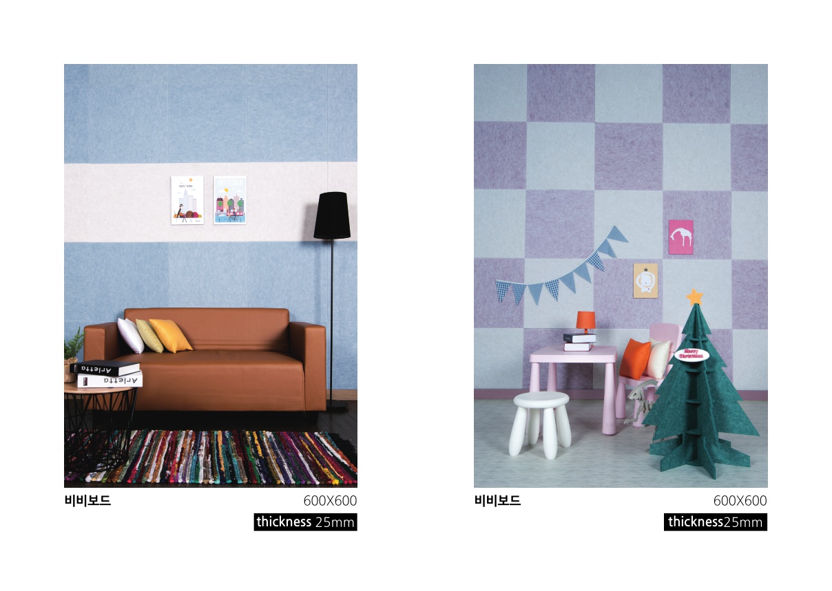 With 9mm thickness, unique design interior is realized by a wide cutting patterns from punching to puzzle with own design in various space environments. Because, as a 100% polyester (Environment-friendly product), it is soft and light, it can be built easily. And it does not crumble or break. Because it is strong against humidity and it discharges the moisture, it makes it impossible for the fungus or the mites inhabit.